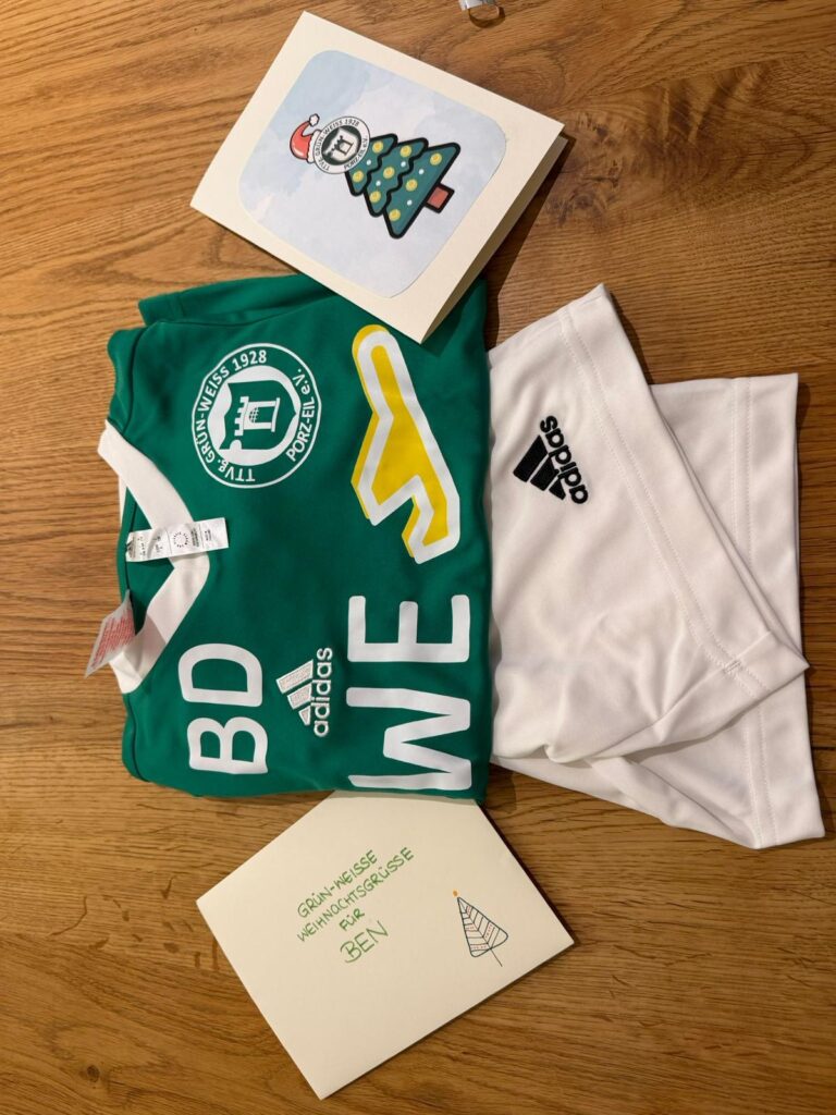 Vielen Dank an unser Mitglied Jana, die uns die Trikots zur Verfügung gestellt hat und sie außerdem gemeinsam mit unserer Jugendwartin Svenja verteilt hat. Auch vielen Dank an Svenja für das Verpacken und die personalisierten Weihnachtskarten!